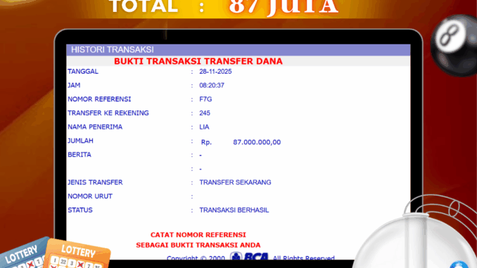 DEWALIVE JACKPOT TOGEL DI AMAZON LOTTO 4D Rp 87.000.000,- LUNAS